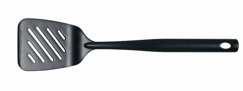 Wees vriendelijk voor je pannen met deze zwarte Brabantia Black Line bakspaan voor pannen met anti-aanbaklaag. Een stalen bakspaan kan je pannen beschadigen. Deze bakspaan heeft een blad van hittebestendig nylon (tot 220?C)versterkt met glasvezels: heel ‘vriendelijk’ voor je pannen.