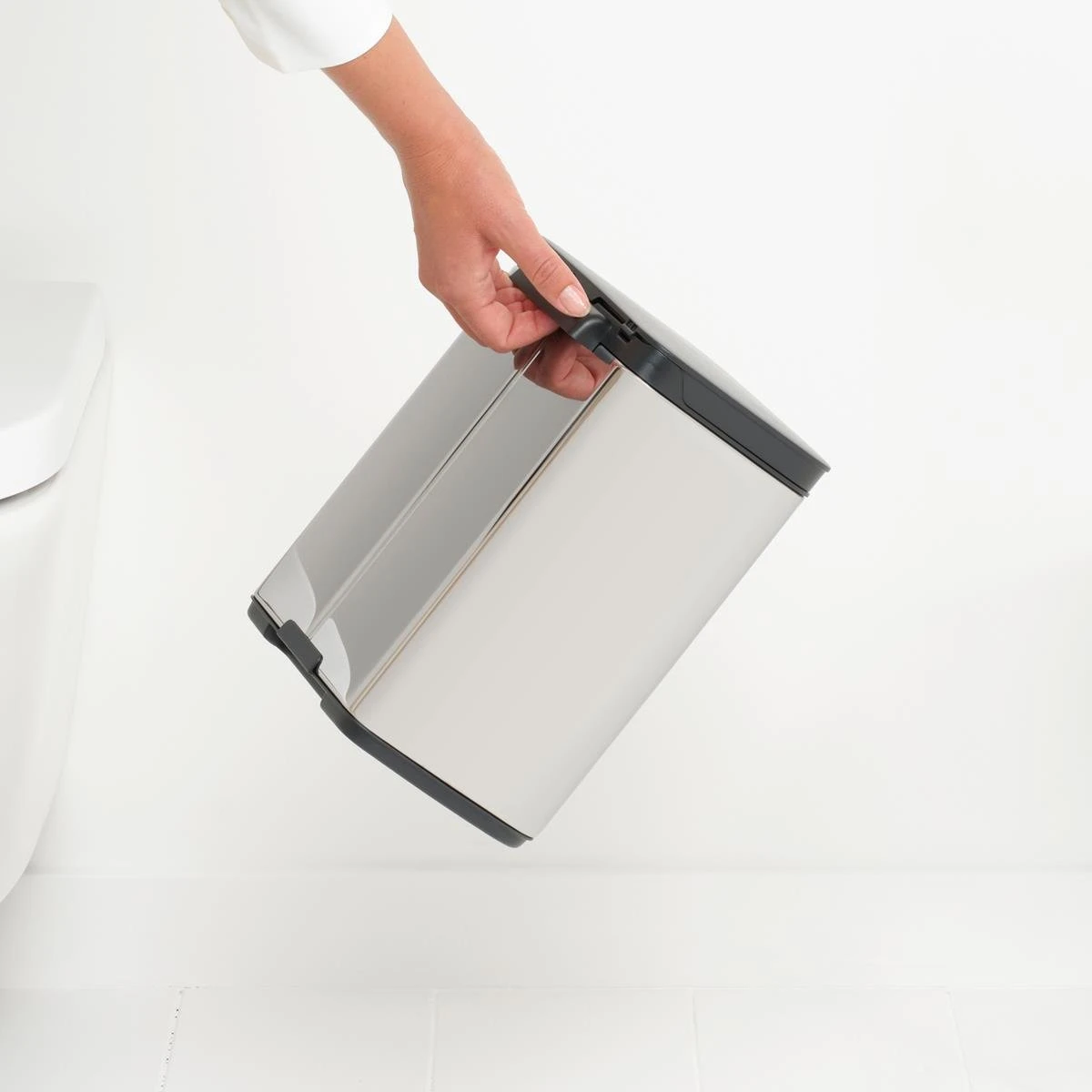 Een kleine prullenbak, maar groots in stijl! De Brabantia Bo Afvalemmer is perfect voor in het toilet of in de badkamer. Zet ‘em neer of hang Bo aan de muur; het kan allebei. De deksel opent gemakkelijk vanaf de linker-, rechter- én voorkant. Handig!
