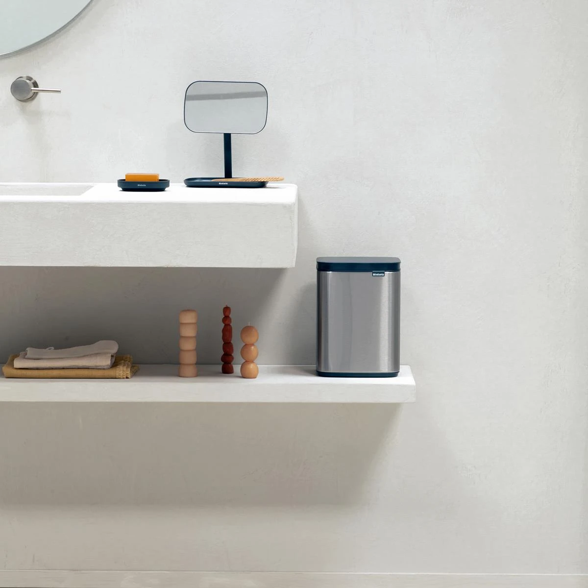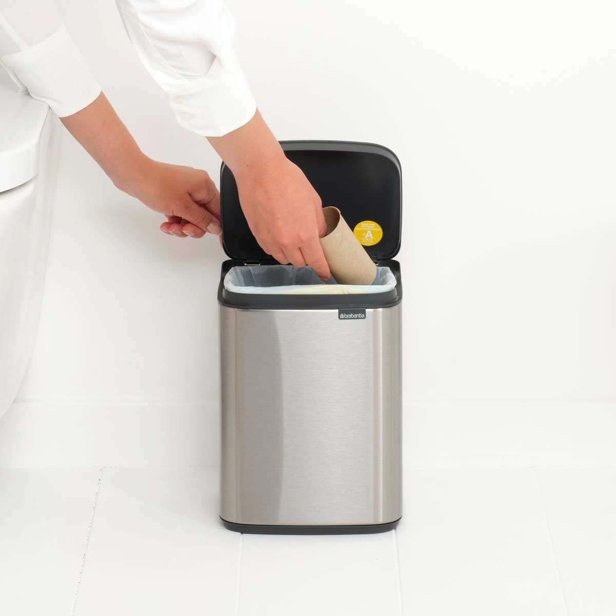 Een kleine prullenbak, maar groots in stijl! De Brabantia Bo Afvalemmer is perfect voor in het toilet of in de badkamer. Zet ‘em neer of hang Bo aan de muur; het kan allebei. De deksel opent gemakkelijk vanaf de linker-, rechter- én voorkant. Handig!