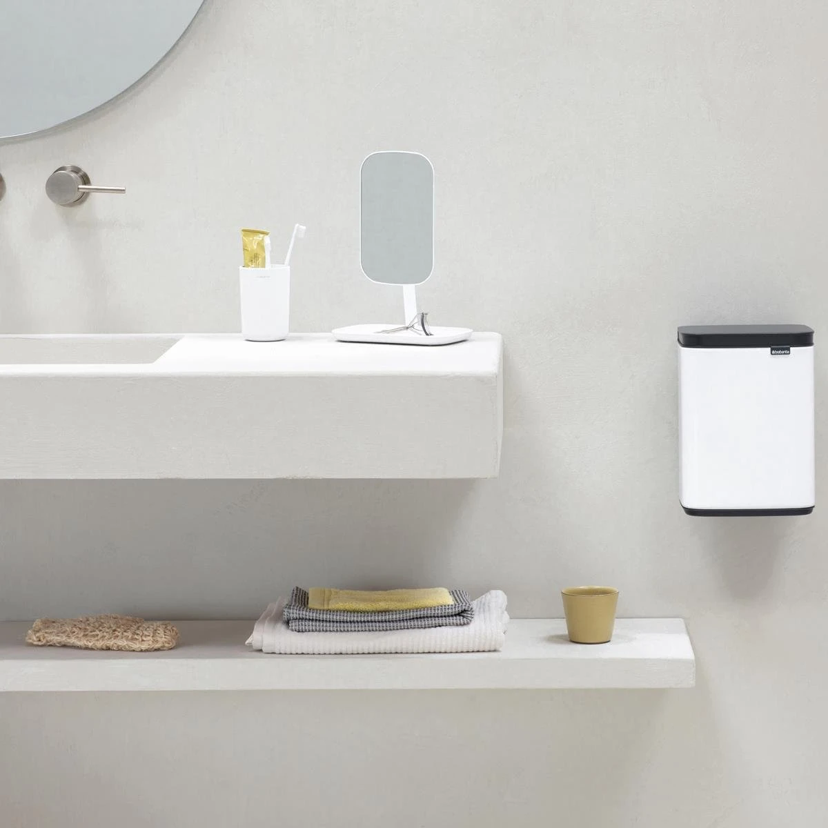 Een kleine prullenbak, maar groots in stijl! De Brabantia Bo Afvalemmer is perfect voor in het toilet of in de badkamer. Zet ‘em neer of hang Bo aan de muur; het kan allebei. De deksel opent gemakkelijk vanaf de linker-, rechter- én voorkant. Handig!