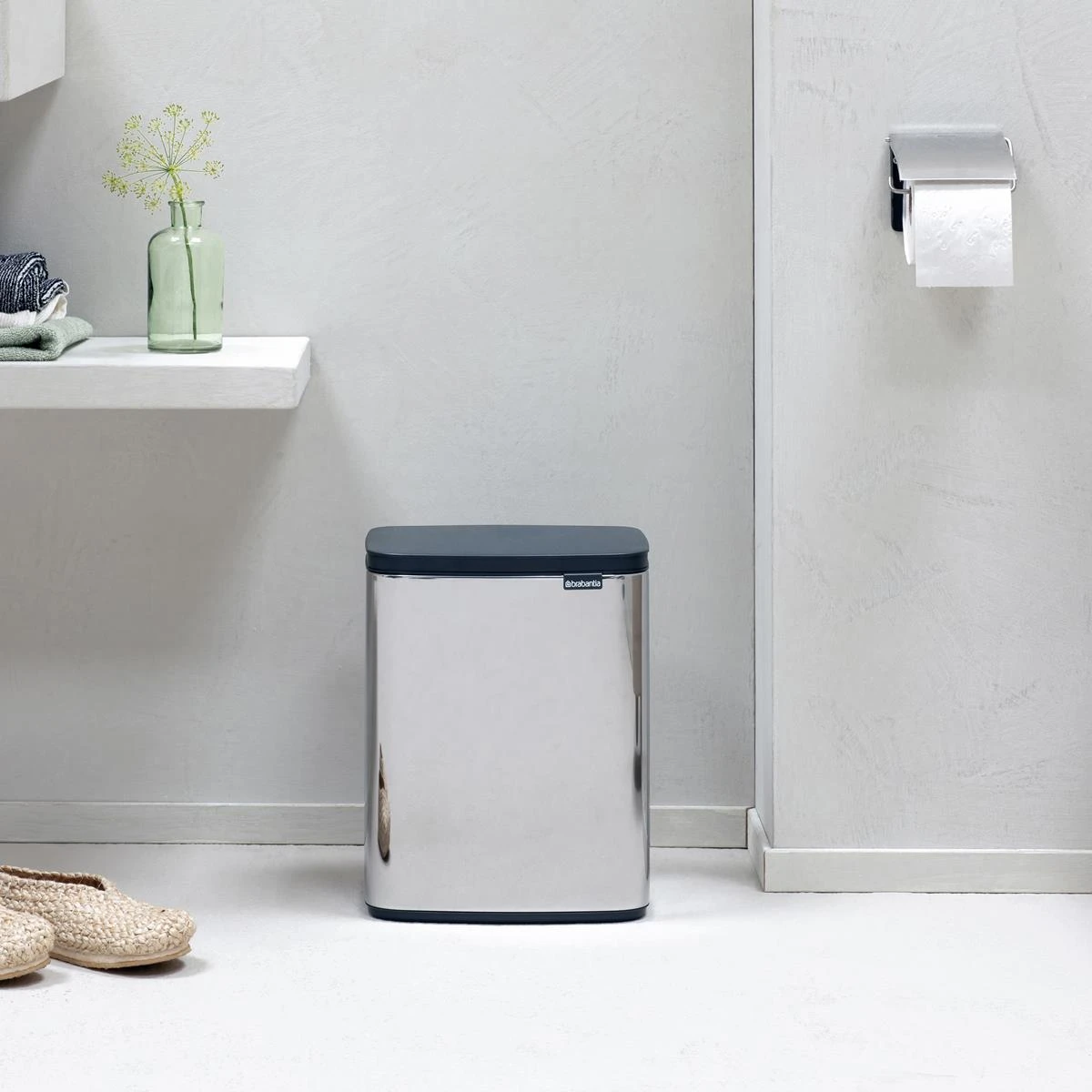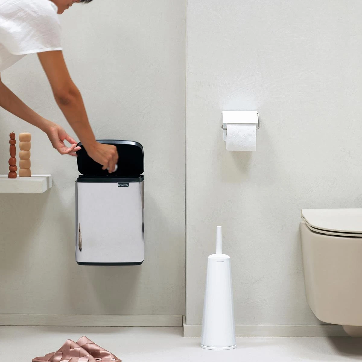 Niet te groot, niet te klein, maar precies goed. De Brabantia Bo Afvalemmer is perfect voor in het toilet of in de badkamer. Zet ‘em neer of hang Bo aan de muur. De deksel opent gemakkelijk vanaf de linker-, rechter- én voorkant. Handig!