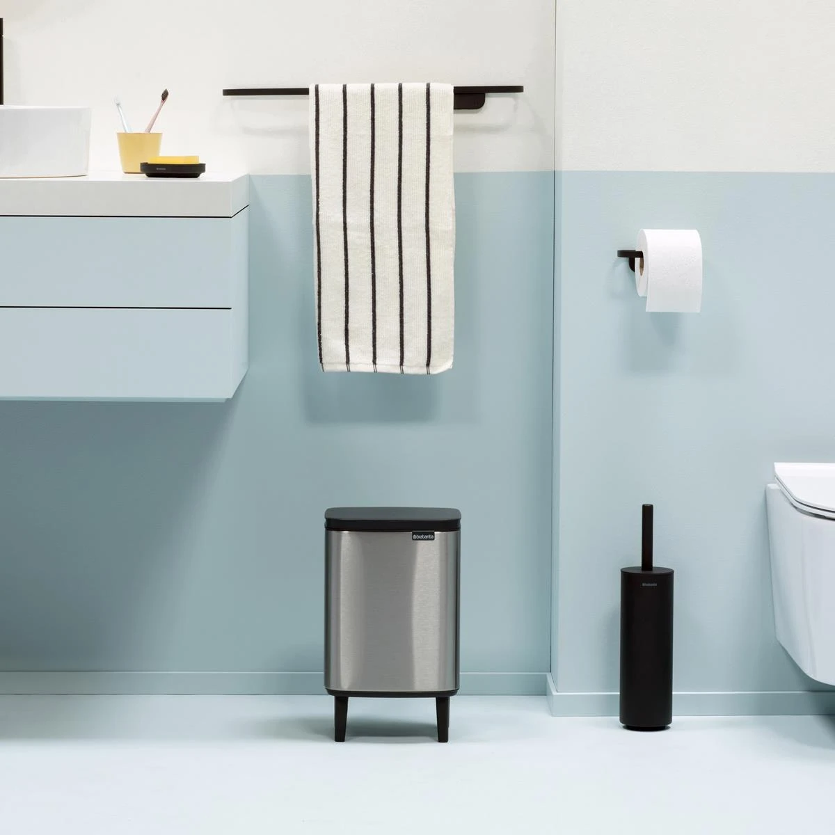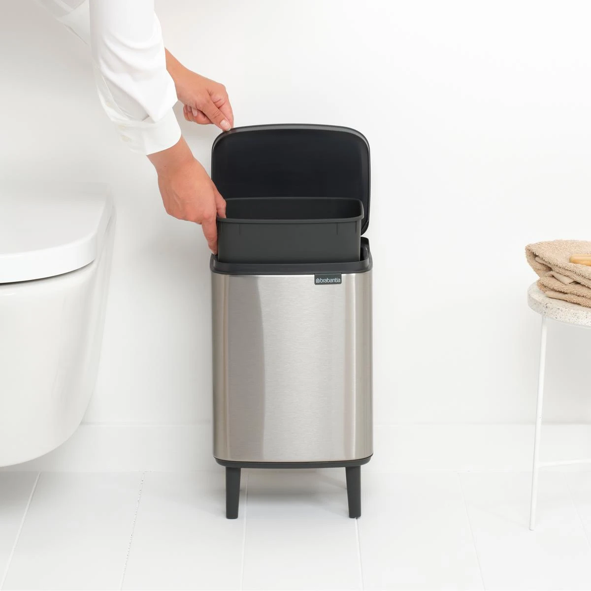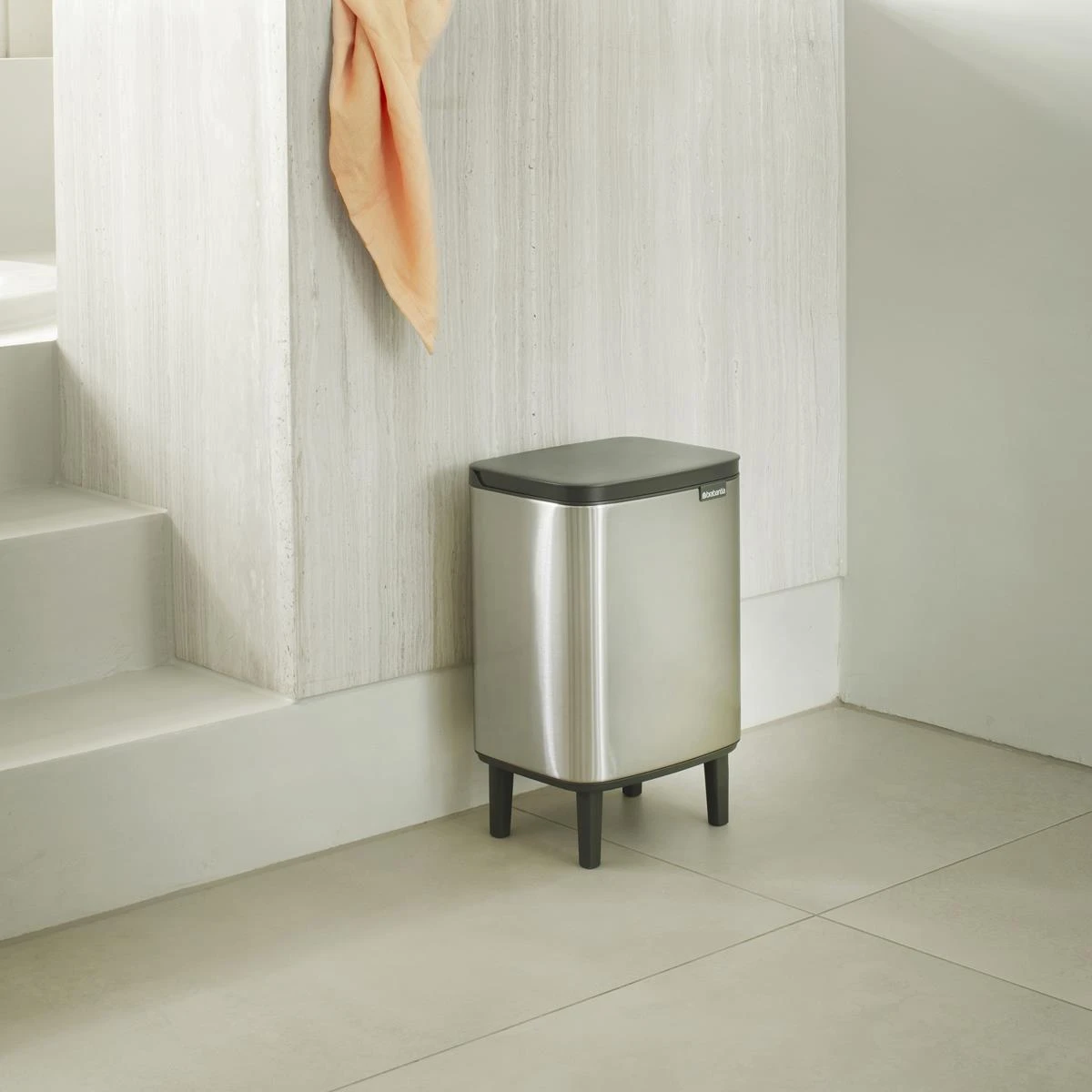 Niet te groot, niet te klein, maar precies goed. De Brabantia Bo Hi Afvalemmer is perfect voor in de badkamer. Deze chique prullenbak staat hoog op z’n pootjes. De deksel opent gemakkelijk vanaf de linker-, rechter- én voorkant. Handig!