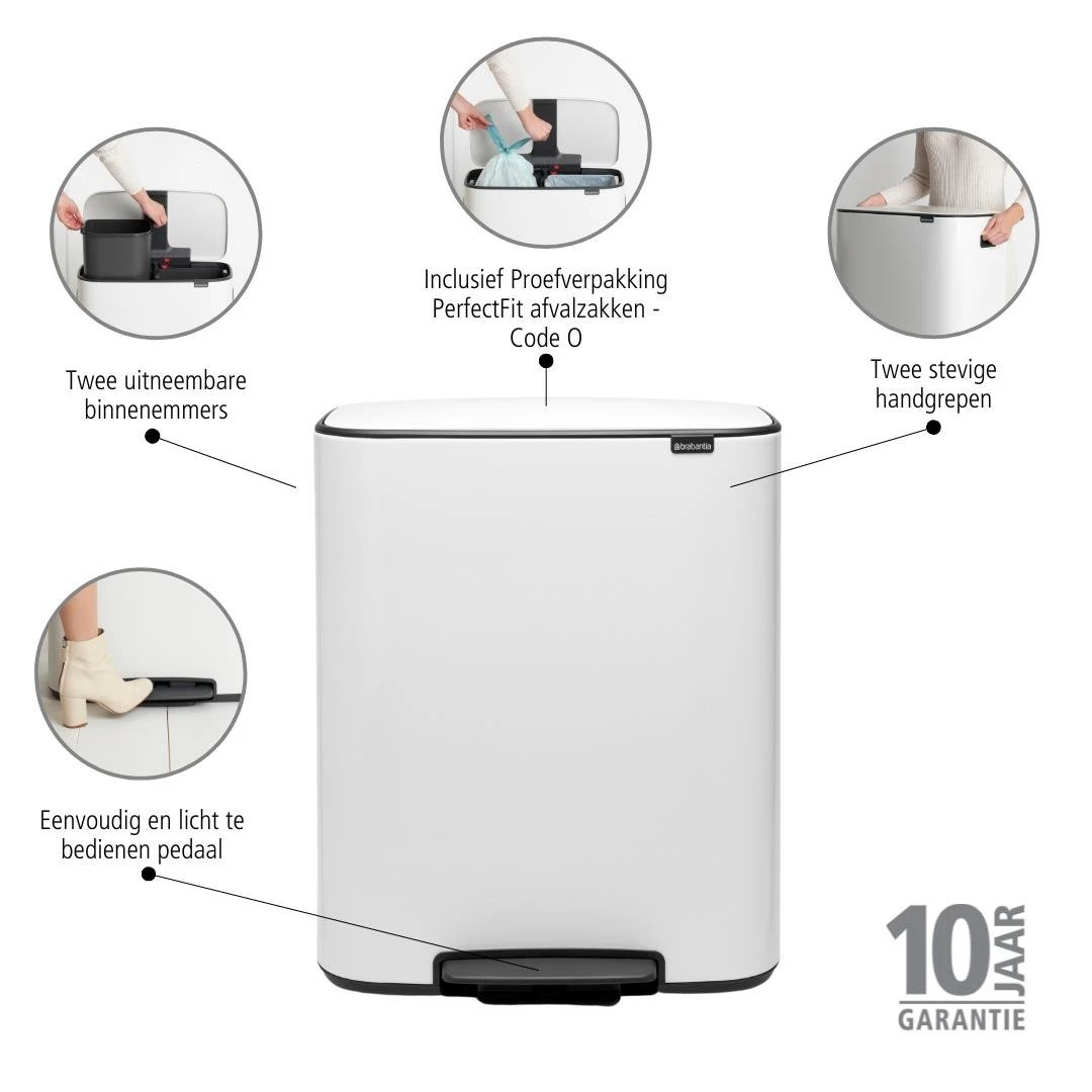 Stijlvol en chique, deze Bo pedaalemmer van Brabantia! Hij staat niet alleen mooi in je keuken, maar is ook nog eens erg handig. Kies voor een grote binnenemmer van 60 liter of voor een duo afvalbak om je afval te scheiden.