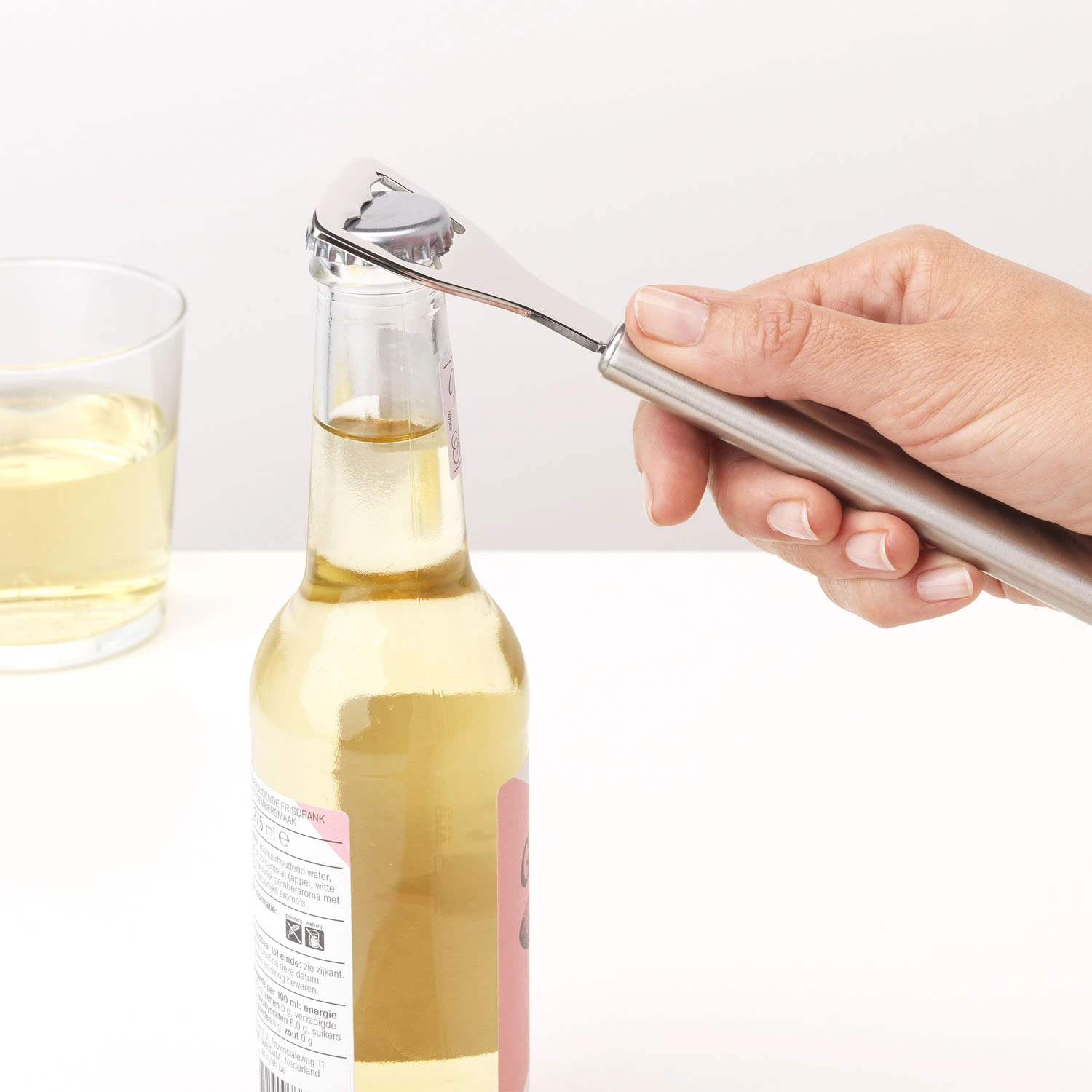 Jij opent flessen zonder enige moeite met deze Flesopener uit Brabantia’s Profile-collectie. Deze simpele en compacte flessenopener is gemaakt van hoogwaardig RVS, en ligt prettig in de hand waardoor jouw gebruikscomfort gegarandeerd wordt! Met de stijlvolle en moderne vormgeving is deze flesopener een toevoeging voor iedere keuken!