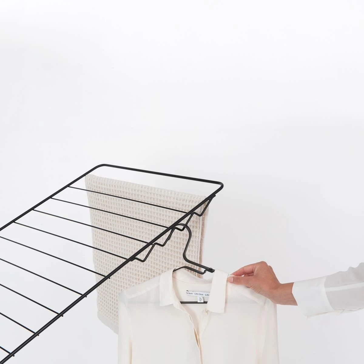 Bespaar tijd, energie en ruimte door je was natuurlijk te droge met dit slimme Brabantia HangOn droogrek. Naast veel droogruimte kun je er ook extra kledinghangers aan het rek kwijt. Al je was droog? Klap hem in en berg ‘m op!
