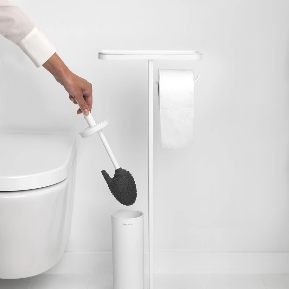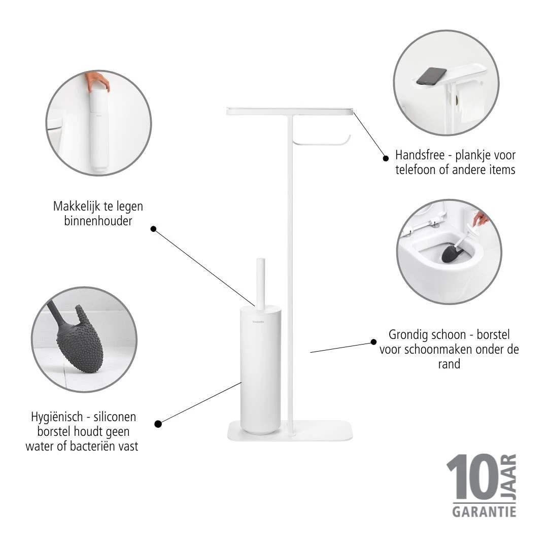 Natuurlijk wil je alles binnen handbereik in de kleinste kamer van het huis en dat is mogelijk met deze Brabantia MindSet toiletbutler. Zeker de ultieme assistent die een plek biedt aan je mobiel, een rol toiletpapier en een toiletborstel.