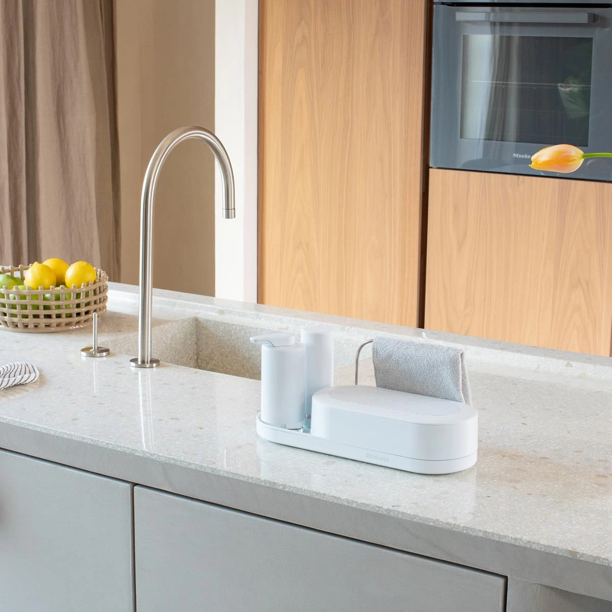 Georganiseerd én stijlvol: de Brabantia SinkStyle organiser set wil je gewoon op het aanrecht hebben staan. De set bestaat uit een zeeppomp, een afwasmiddeldispenser en een organiser. De lekbak zorgt voor luchtcirculatie; geen vieze luchtjes. Ideaal!