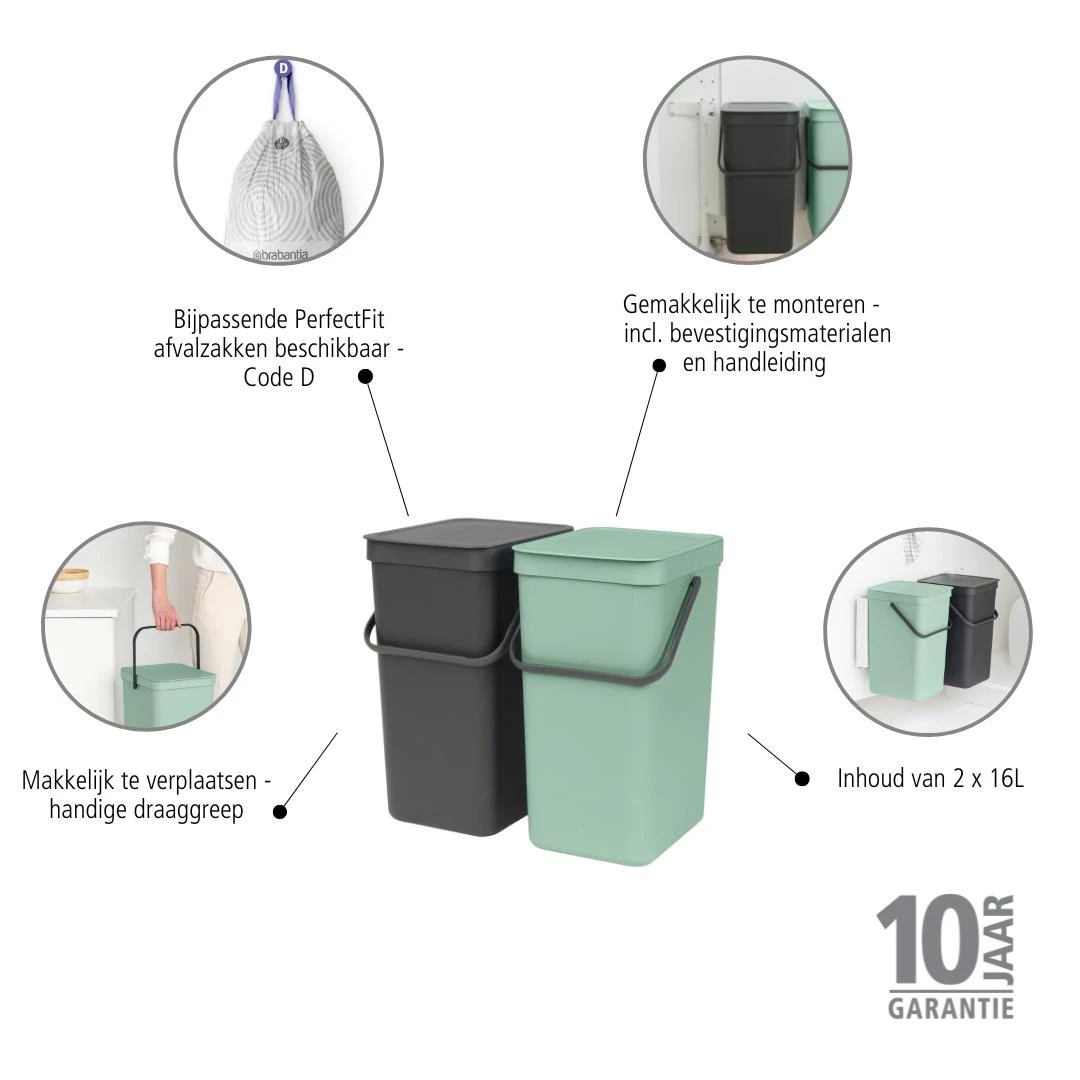 - Twee keer 16 liter; Brabantia afvalzak type D