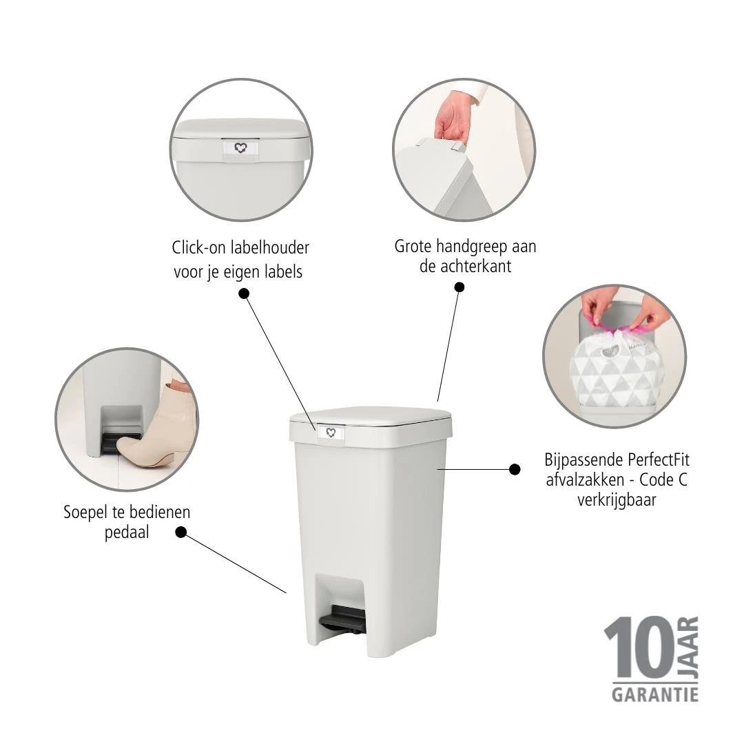 - Met een inhoud van 10 L, geschikt voor Brabantia PerfectFit afvalzakken (Maat C)
