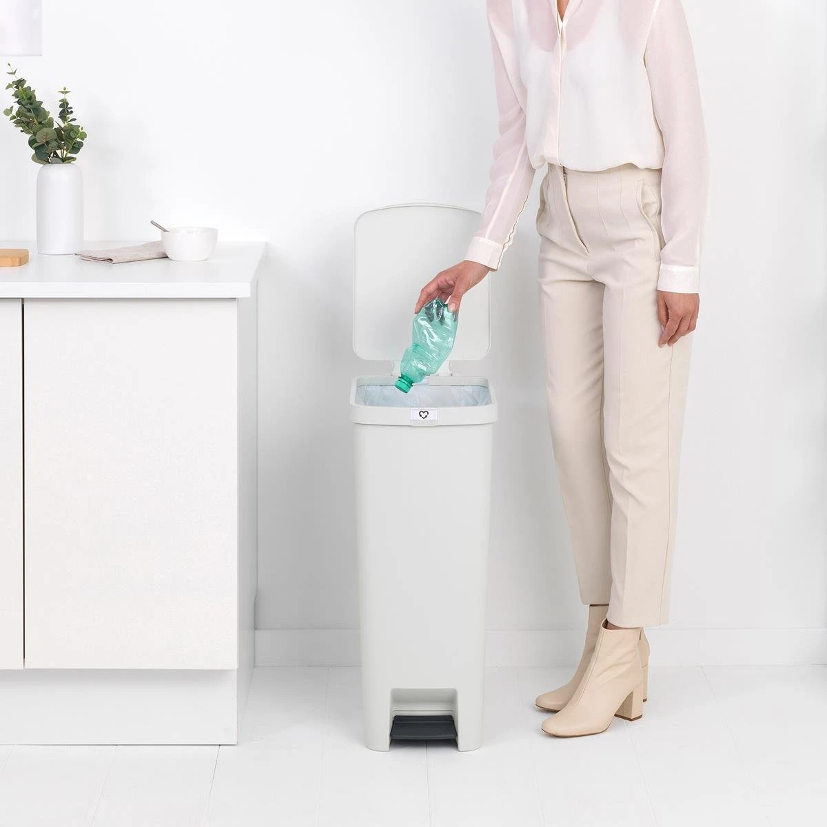 Met deze Brabantia StepUp pedaalemmer zet jij de volgende stap in een duurzaam huishouden, want de pedaalemmer is gemaakt van 91% gerecycled huisafval en is voor 99% recyclebaar. De opbergruimte voor afvalzakken maakt hem ook nog super praktisch!